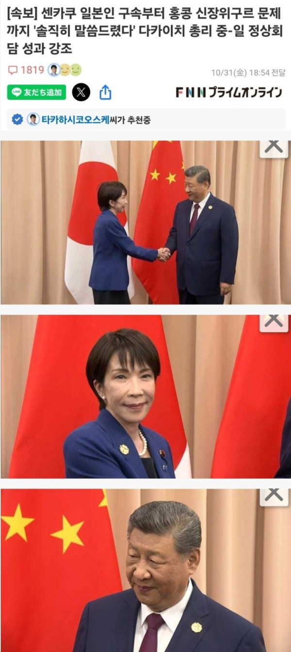 중일 정상회담 분위기 세컷 요약