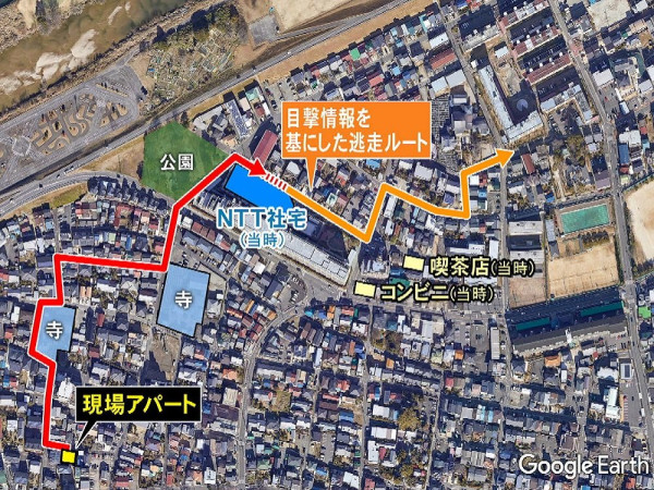 '혈흔은 길 중간에서 끊어졌어요'당시의 복수의 수사 관계자에 의하면, 실은 나미코씨가 살해된 날 밤, 아이치현경은 경찰견을 사용해, 혈흔을 쫓고 있었다. 그 후, 이 혈흔을 일부의 보도기관도 쫓기 시작했기 때문에, 당시의 수사 간부가 일시 중단을 지시.그리고 그날 밤 현장에는 비가 내리면서 핏자국이 사라져쫓을 수 없게 되었다고 한다