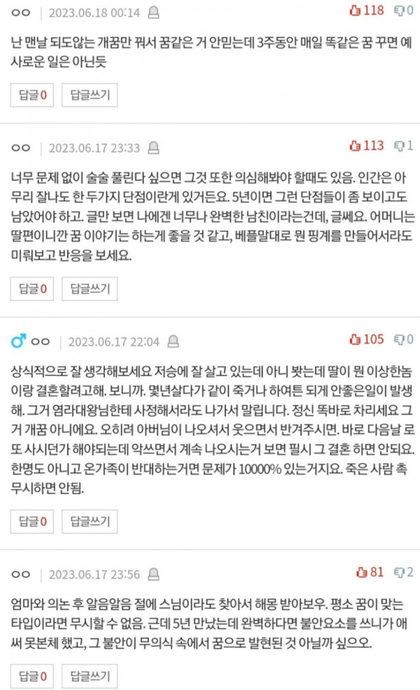 갠적으로 미신이나 꿈 이런거 안믿는디 3주간 같은 꿈이면 완전찝찝하긴하네...