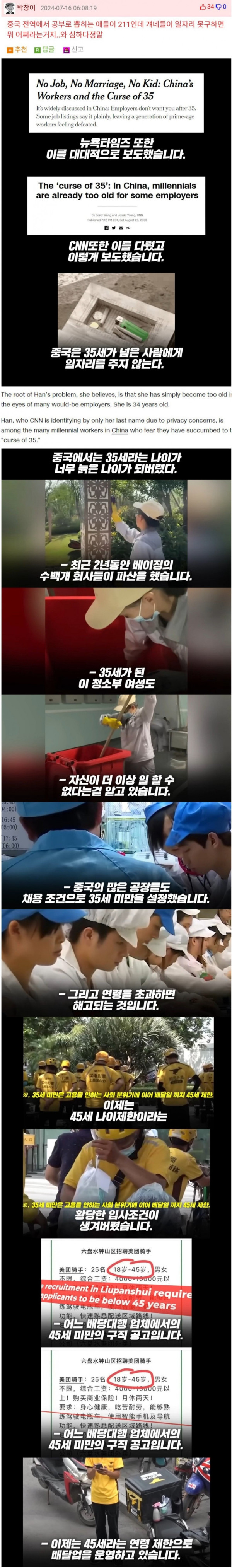 중국내 기업들과 공장들은 35세 이하나 20대의 젊은 사람들을 채용해서 부려먹다가