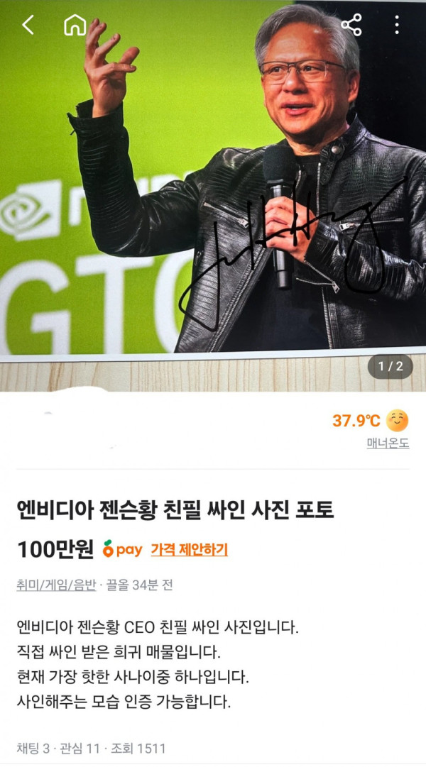 젠슨황 친필 싸인 사진 당근 가격 근황