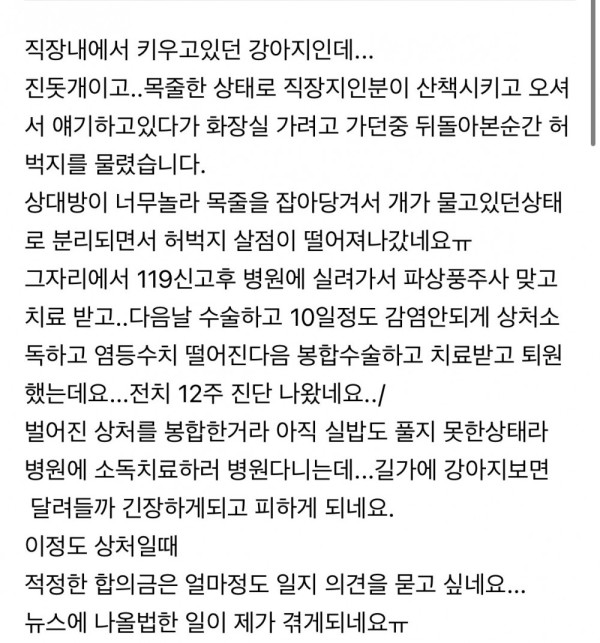 혐주의) 개물림사고시 어느정도의 위로금 받아야할까요