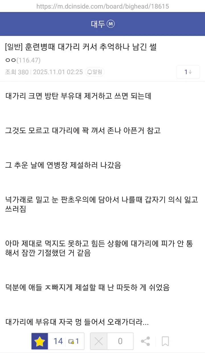 훈련병 때 대가리 커서 추억하나 남긴 썰