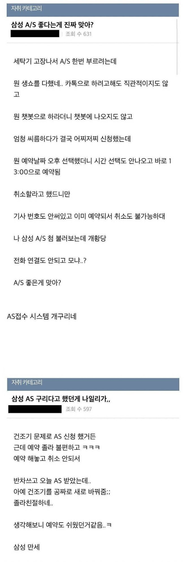 삼성 A/S 접수하다 화가 많이 난 자취생