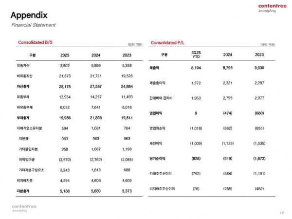 콘텐트리 중앙 IR 자료실 경영실적발표