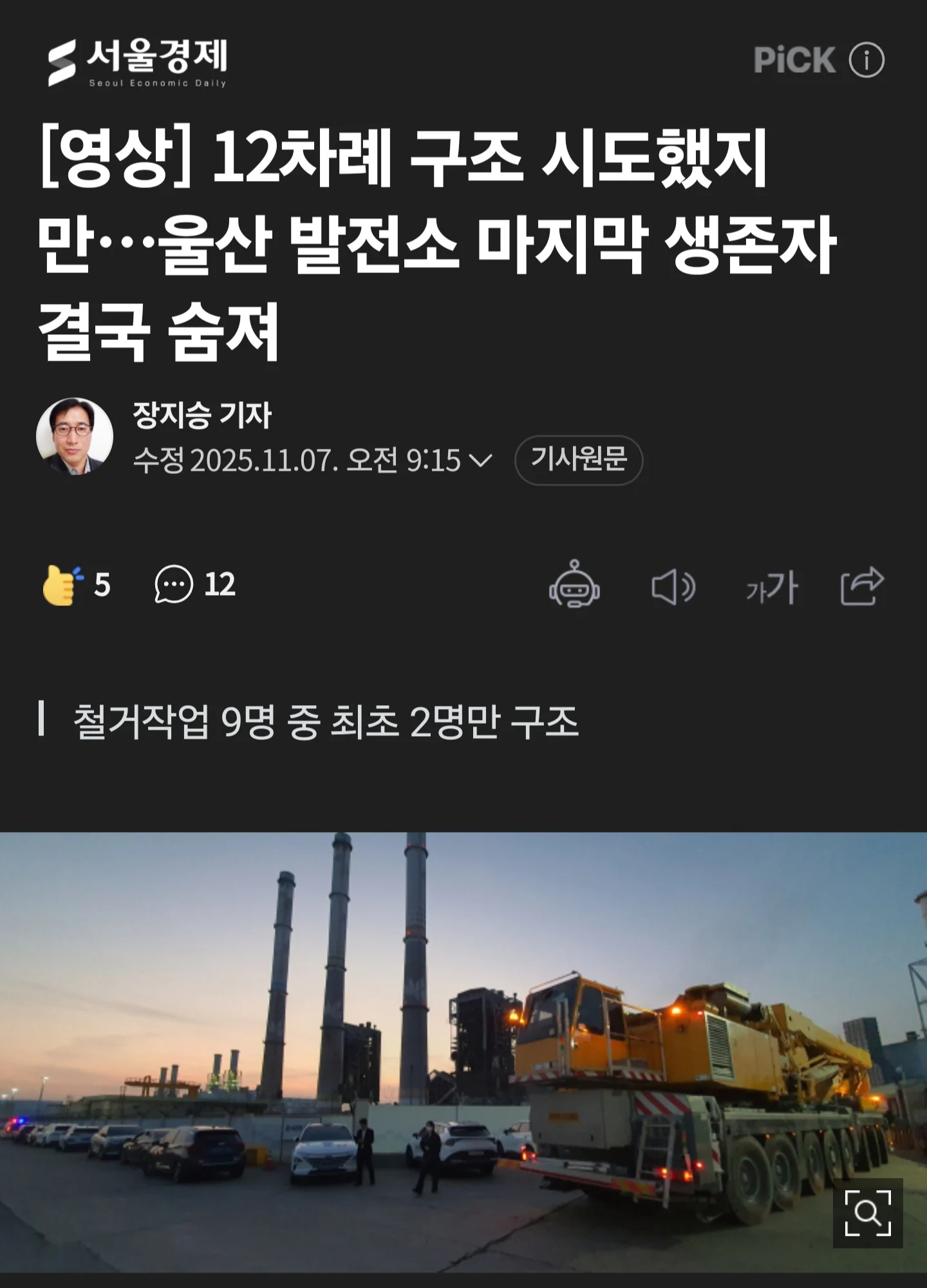 [영상] 12차례 구조 시도했지만…울산 발전소 마지막 생존자 결국 숨져 | 서울경제