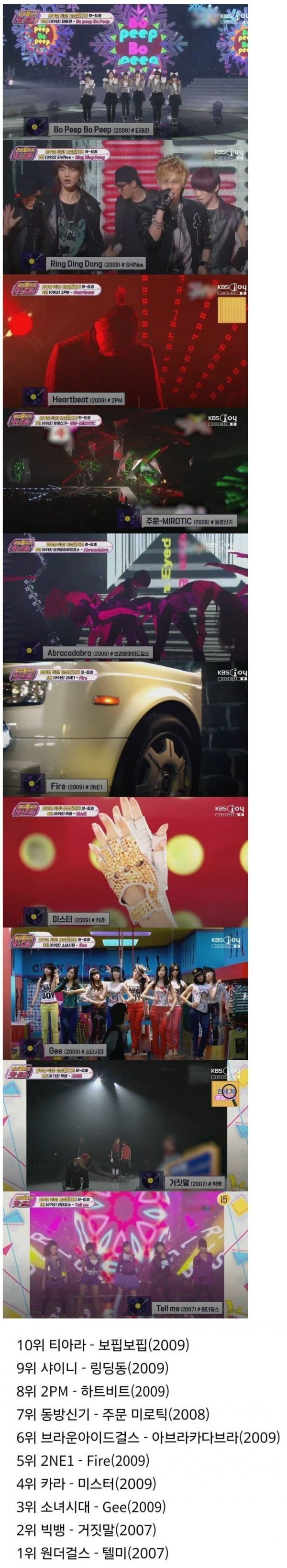 최근 방송사에서 뽑은 2000년대 메가히트곡 TOP 10
