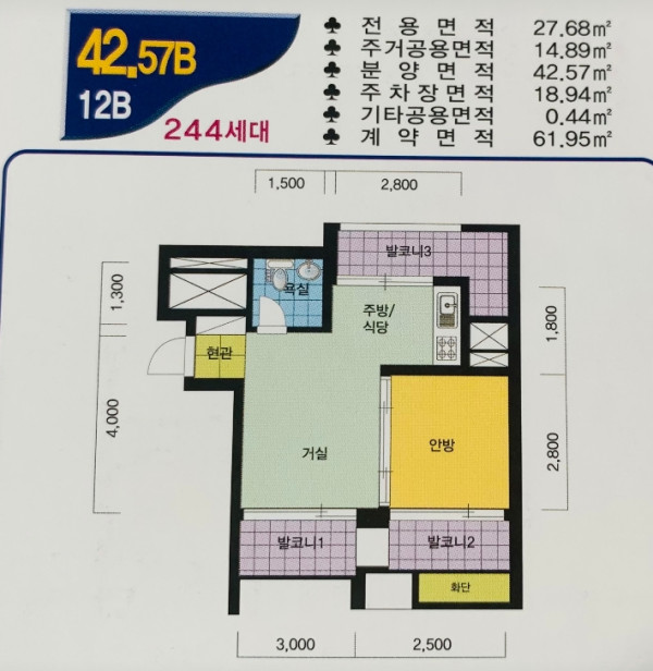 잠실 리센츠 12평 (거실1, 방1, 화장실1)