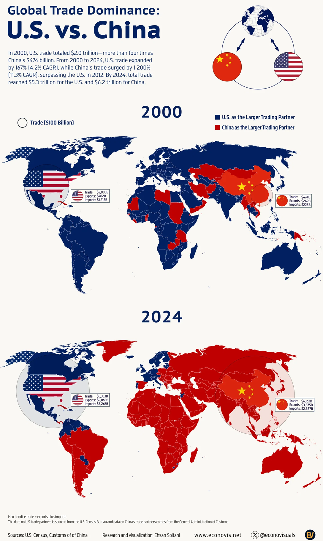 미국 VS 중국 무역 지배력 비교