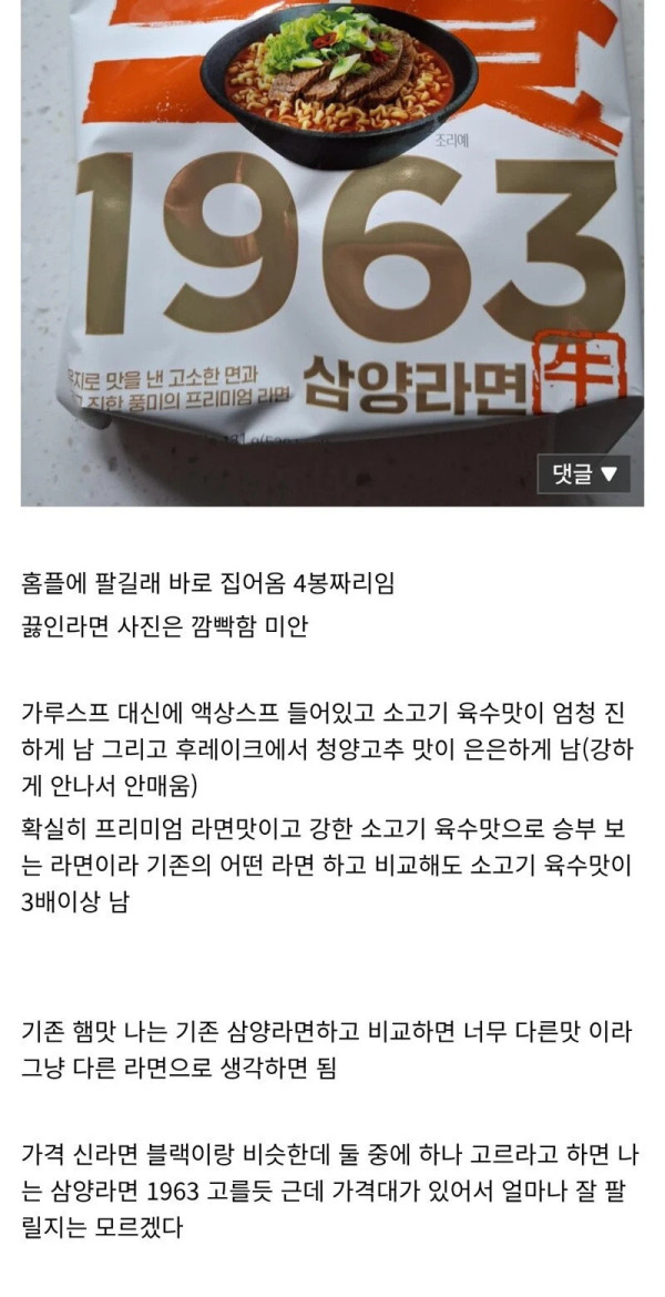 무려 36년만에 재출시 된 삼양 1963 라면 후기