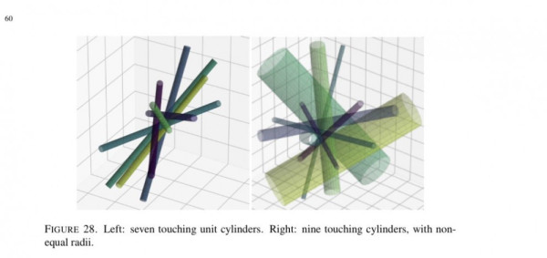 동일 반지름 원기둥 7개가 접한다는 걸 발견