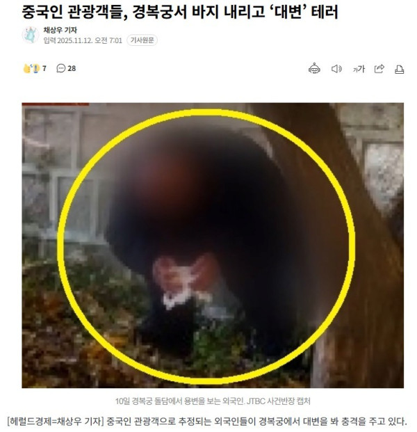 중국인 관광객들, 경복궁서 바지 내리고 ‘대변’ 테러