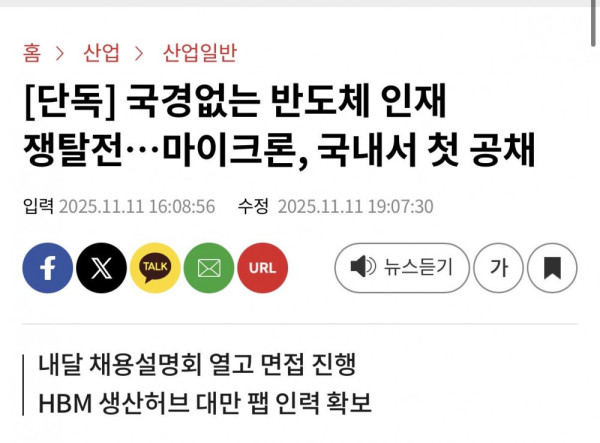 세계 탑3 반도체기업인 마이크론이 한국에서 첫 공채를 개최함.