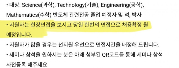 특이사항: 당일 면접 딱 한번만으로 즉석 채용 예정