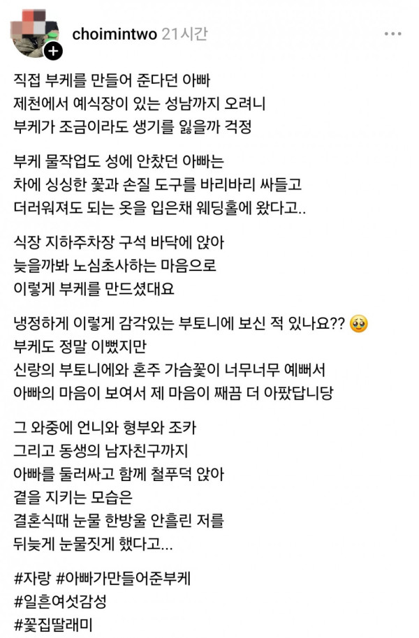 76세 아버지가 딸 결혼식날 직접 만든 부케