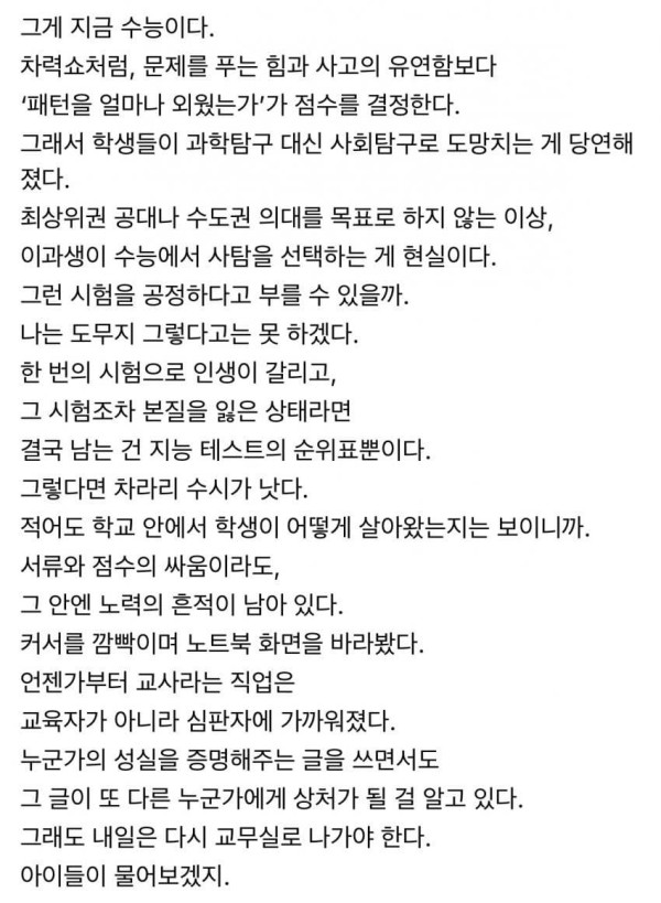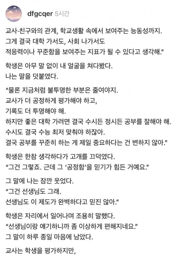 수시가 불공평 하다는 고등학생