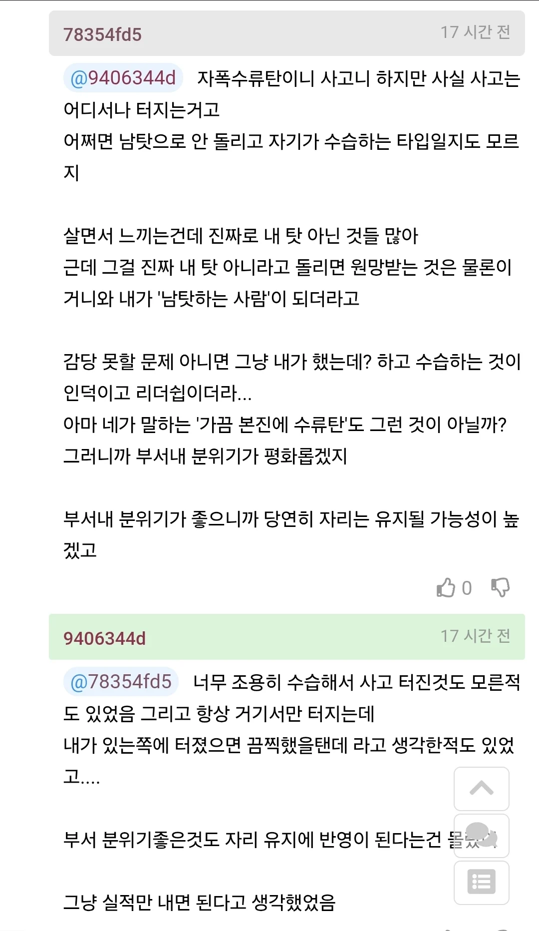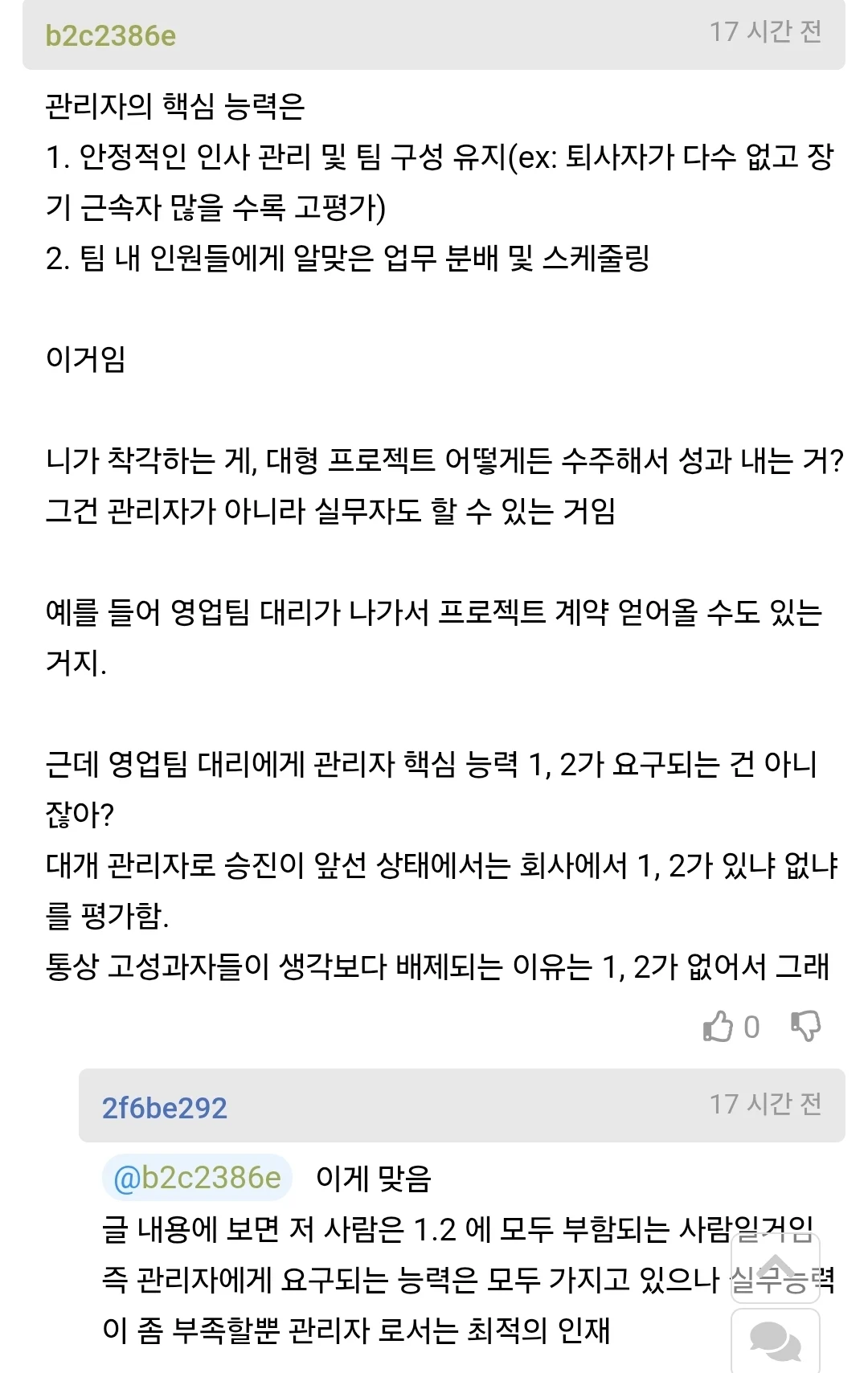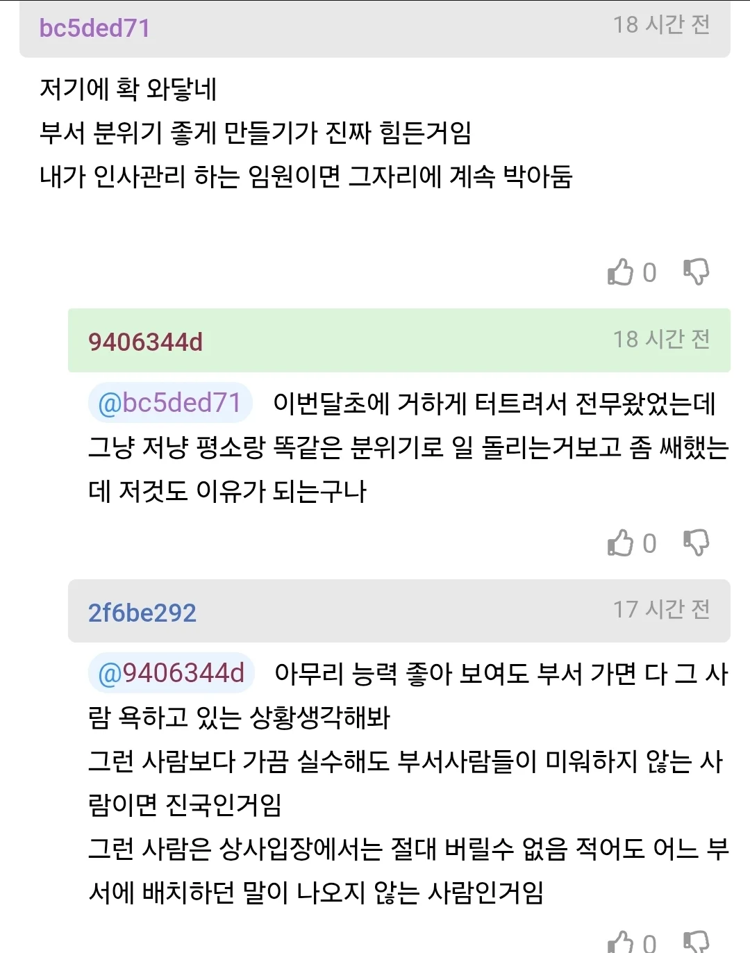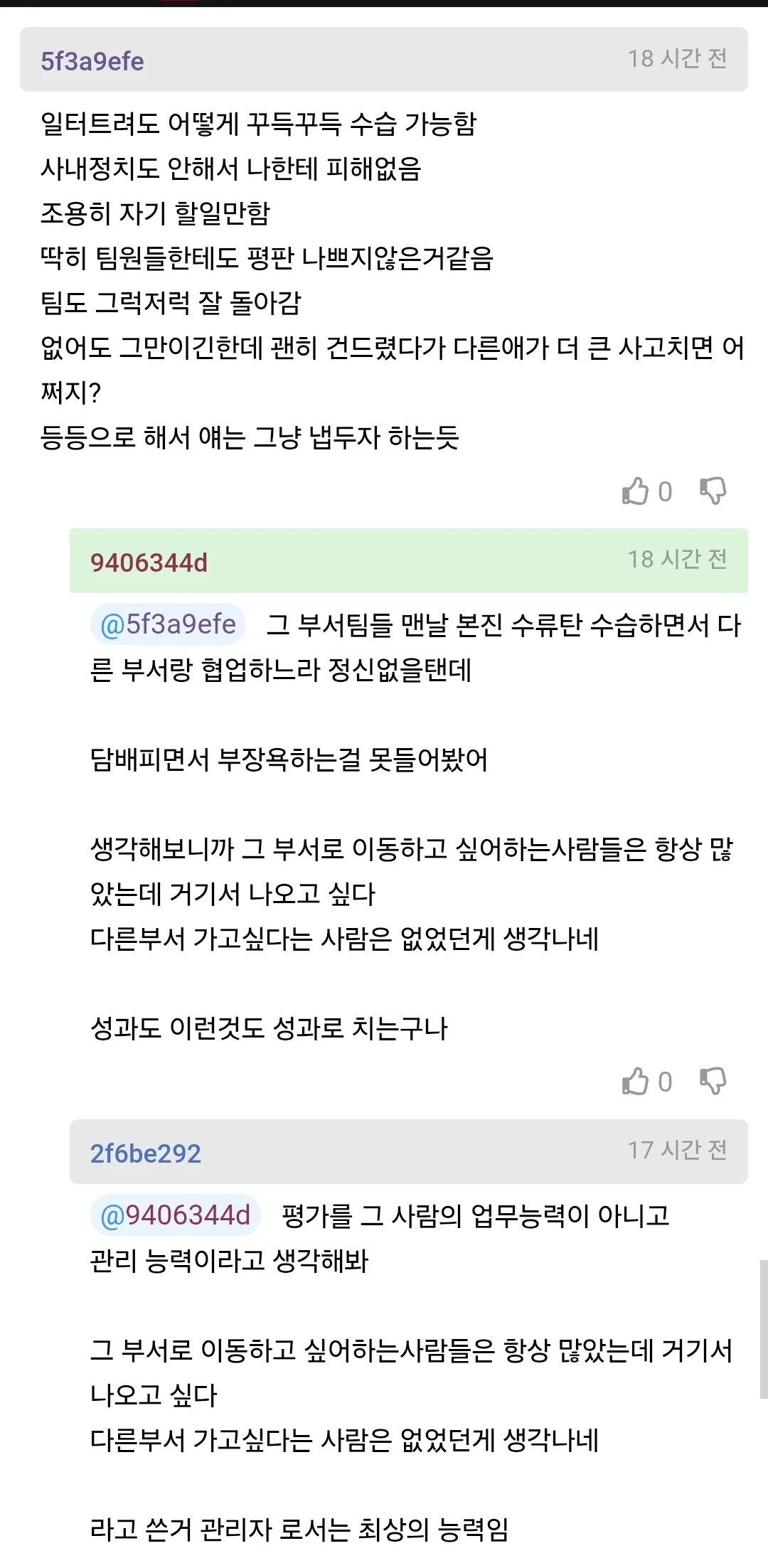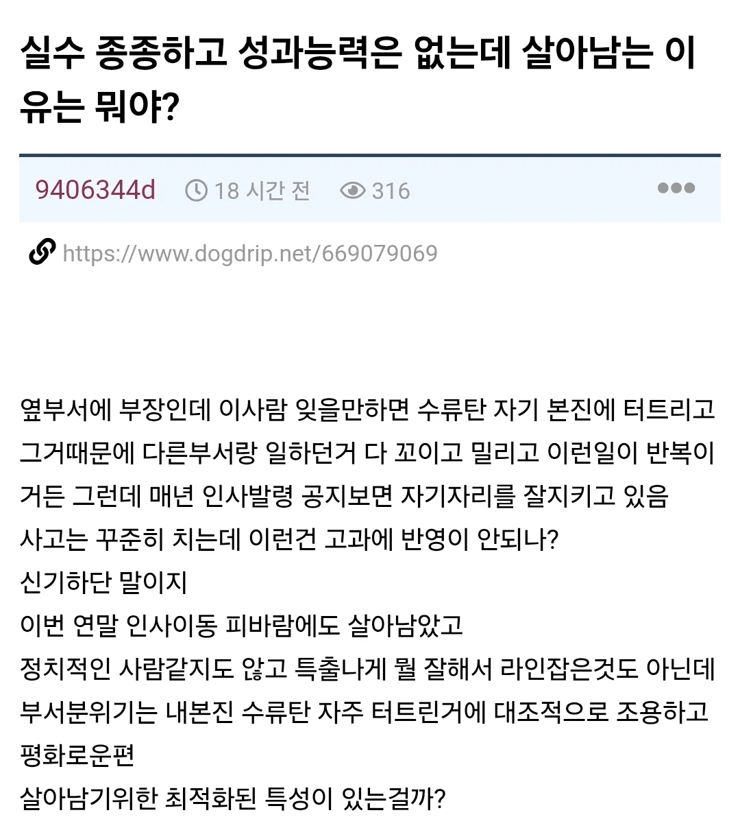 부장이 실력없고 실수해도 살아남는게 신기하다는 사람