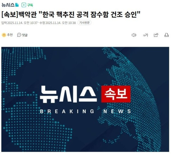 [속보]백악관 "한국 핵추진 공격 잠수함 건조 승인" :: 공감언론 뉴시스 ::