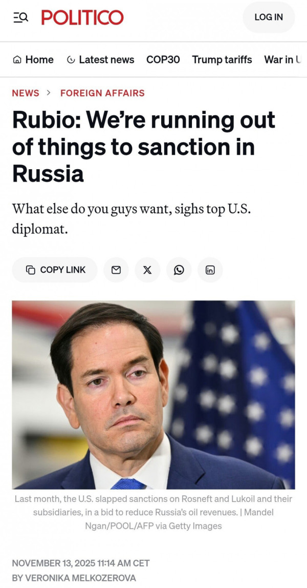 미국 국무부 장관 루비오도 더이상 러시아 제재할게 없다고 발언한 반면 러시아는 장기전으로 계속 끌고갈 생각이라고 함