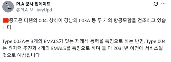 여담으로 푸젠함은 최근 진핑이가 참관한 취역식을 마치고 실전 배치를 앞두고 있으며,