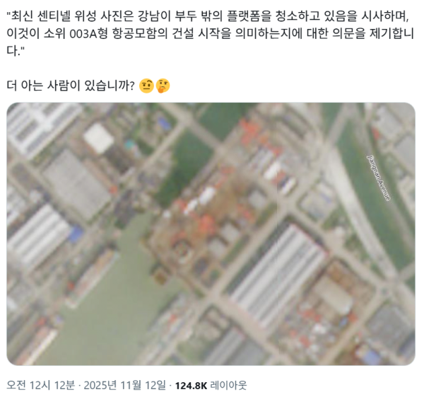 좀 기다려보면 짱깨 밀덕들이 조선소 사진 찍어서 올릴듯