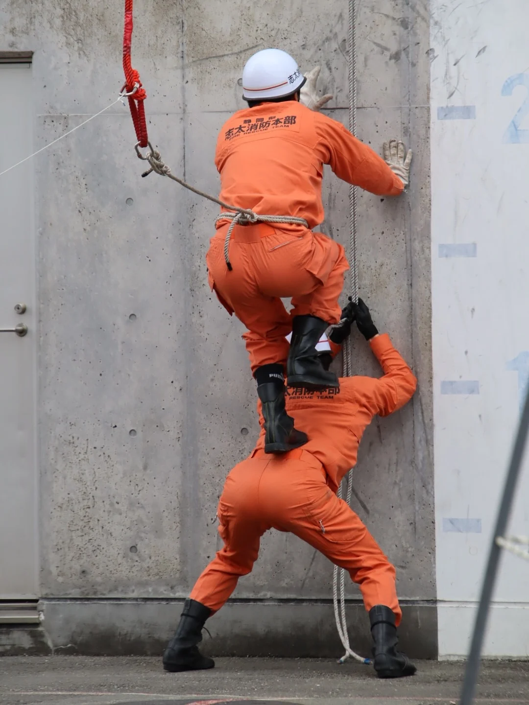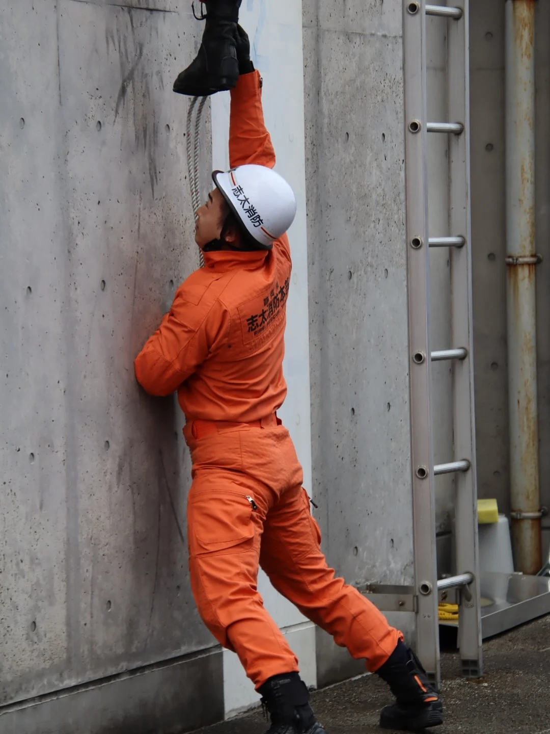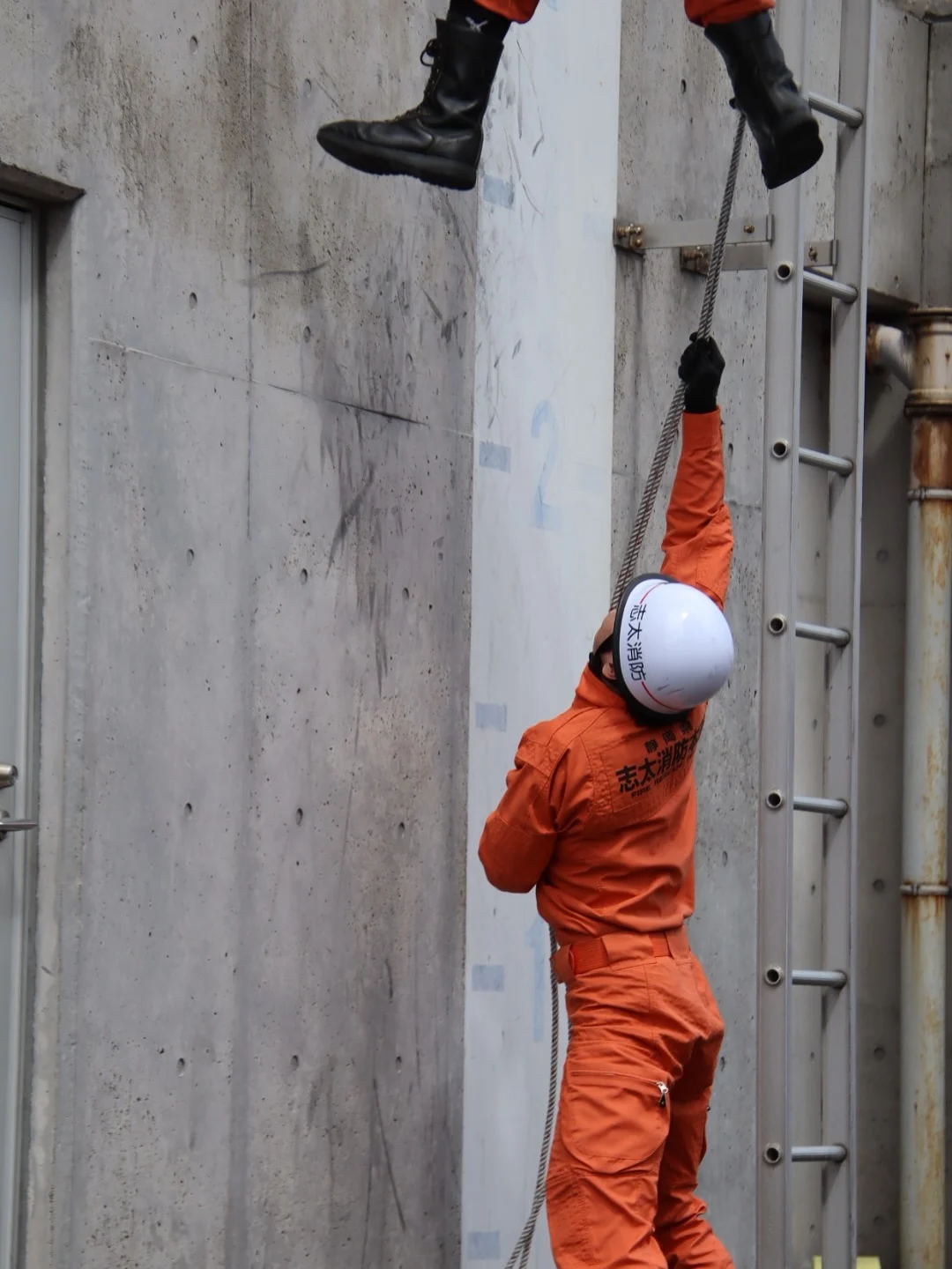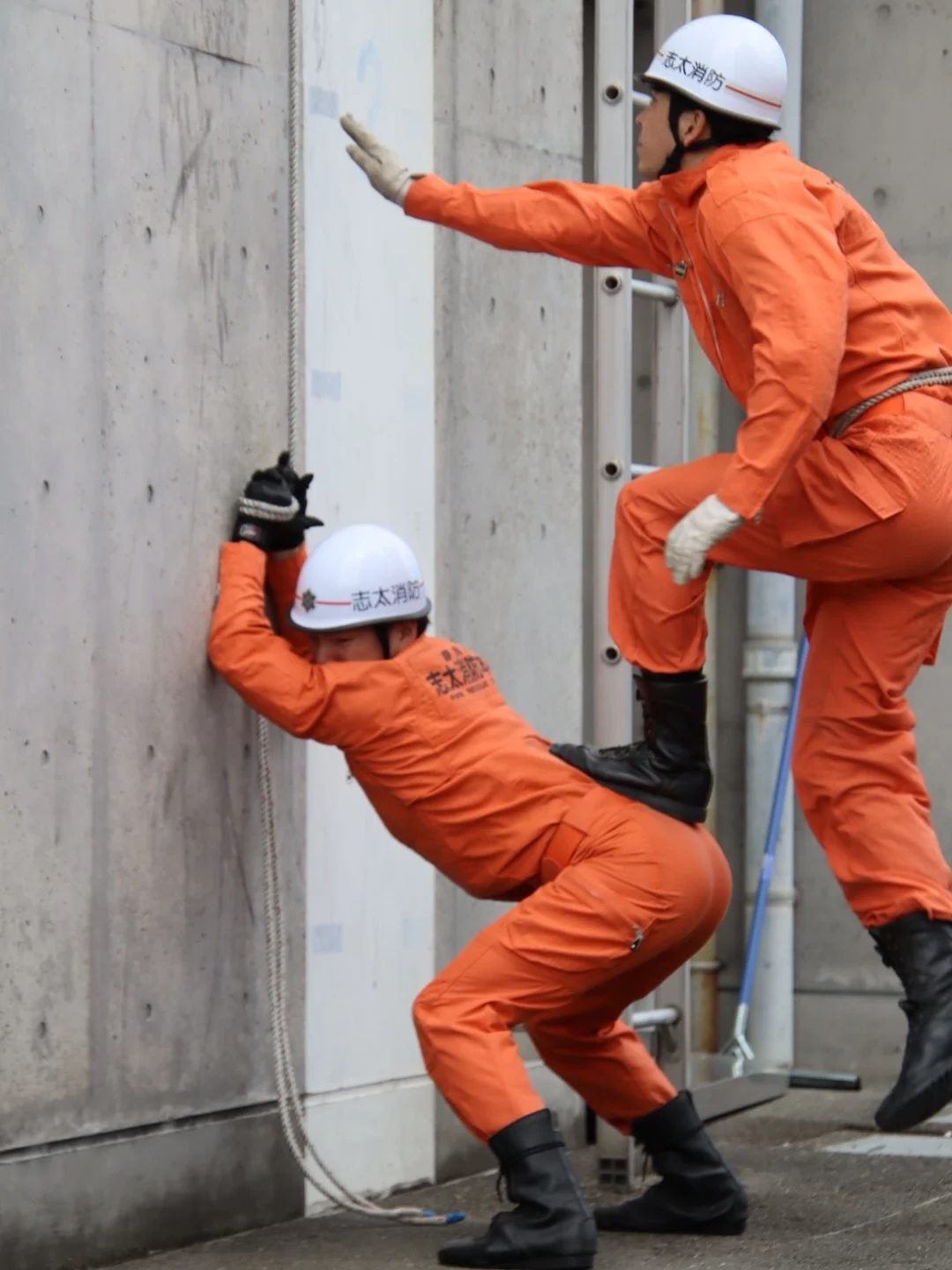 다소 민망해보이지만, 사다리같은 장비를 바로 쓸 수 없을 때를 대비한 훈련인 것으로 보임