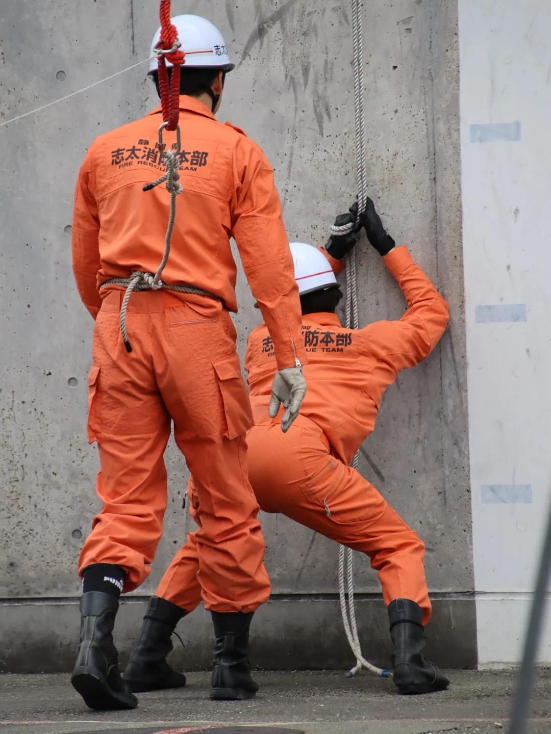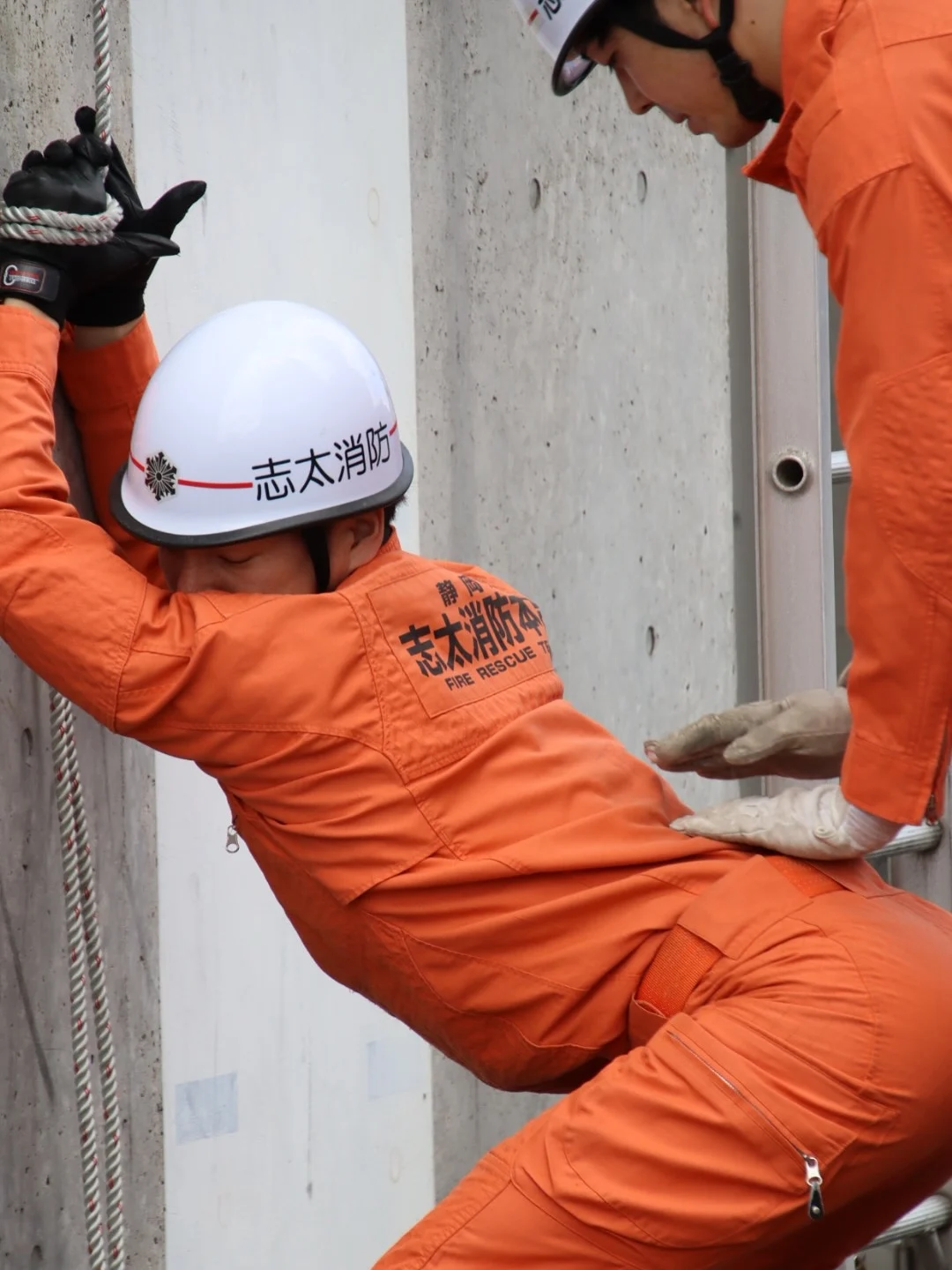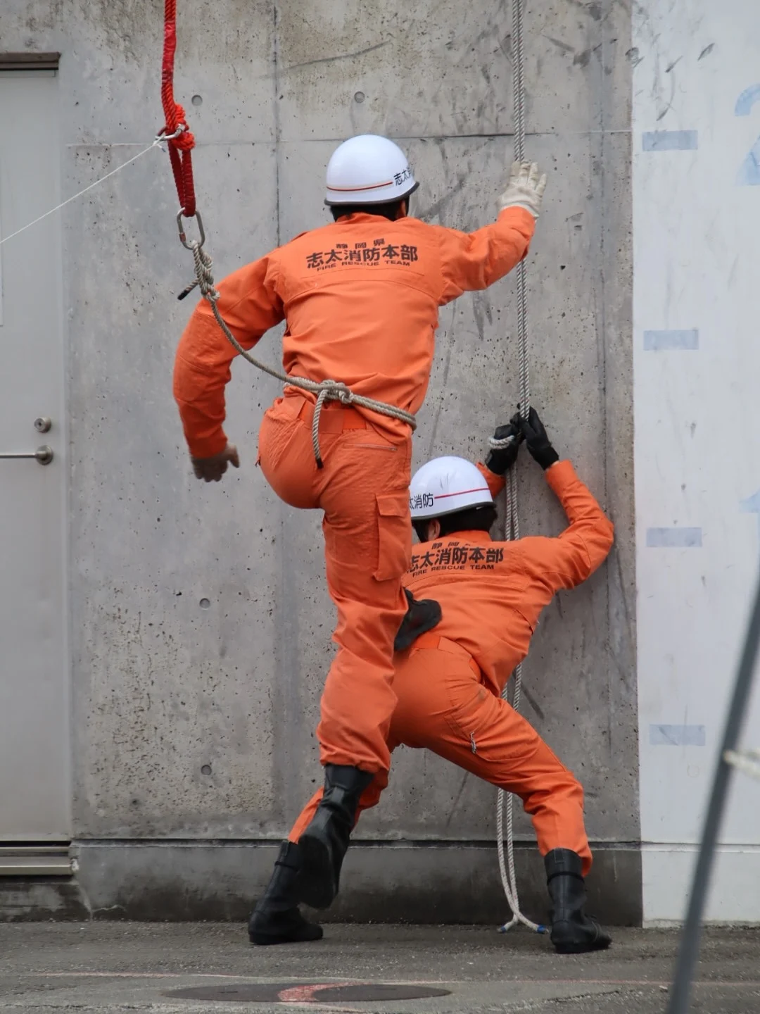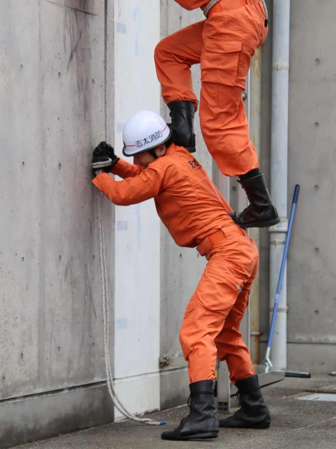 다소 민망해보이지만, 사다리같은 장비를 바로 쓸 수 없을 때를 대비한 훈련인 것으로 보임