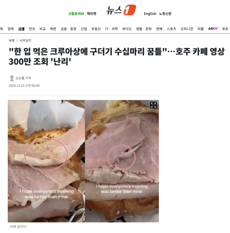 "한 입 먹은 크루아상에 구더기 수십마리 꿈틀"