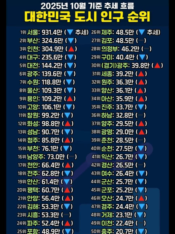 '최신' 대한민국 도시 인구 순위