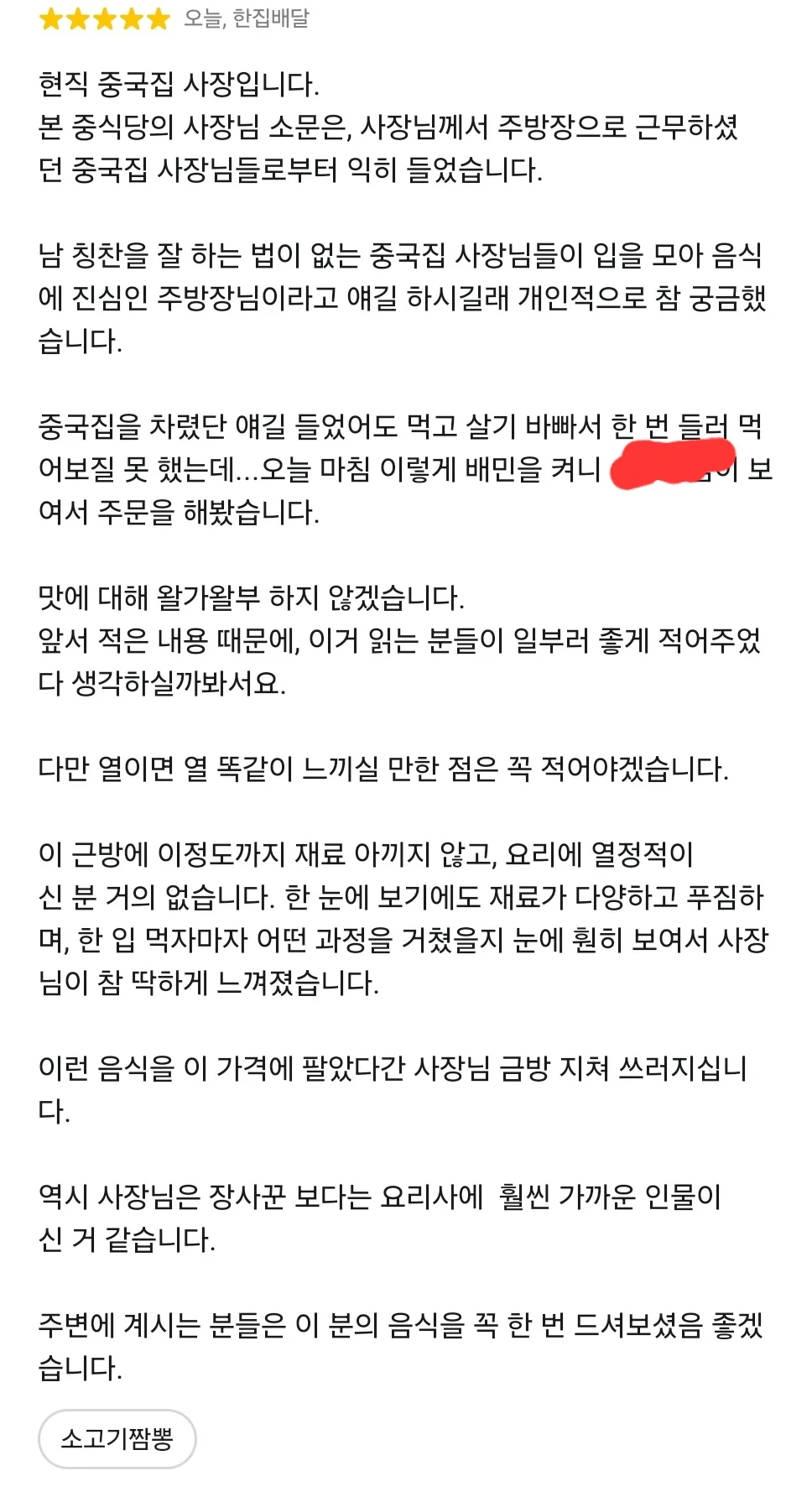 어느 중식당에 달린 동종업계 사장의 리뷰