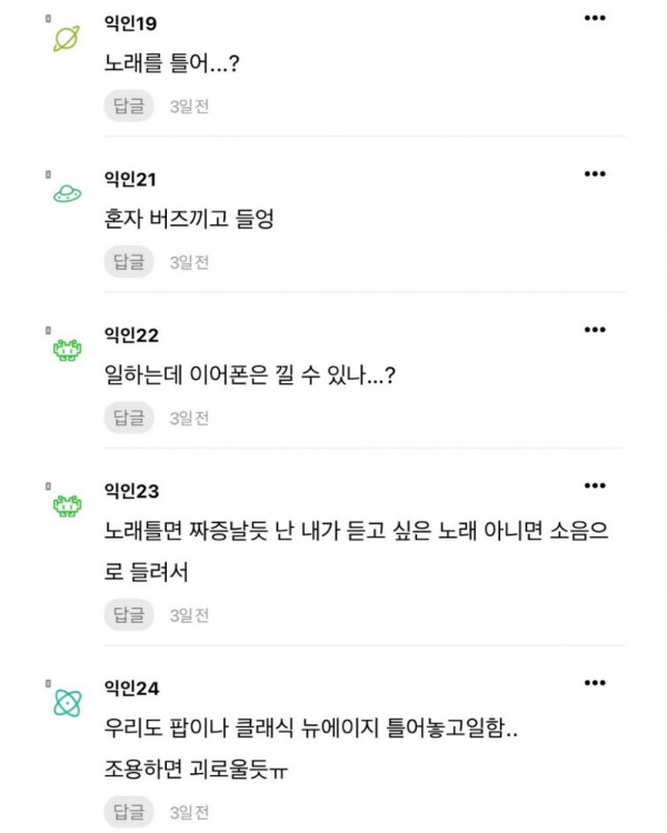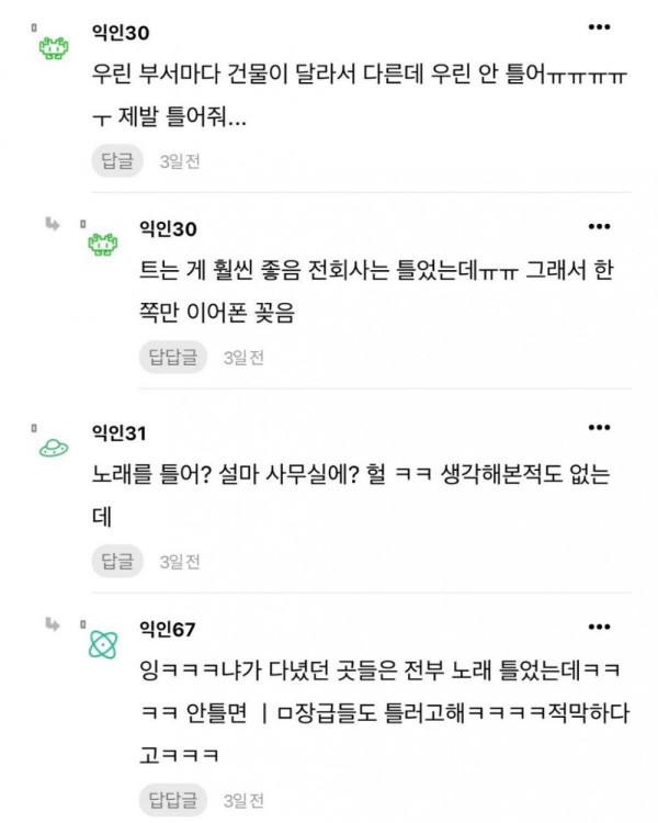 회사 사무실 노래 안 트는 곳은 어케 다녀