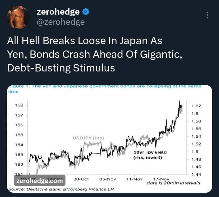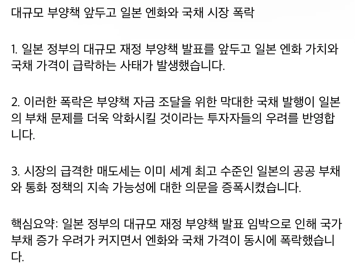 일본, 400조원 부양책 앞두고 엔화와 국채 폭락 ㄷㄷ