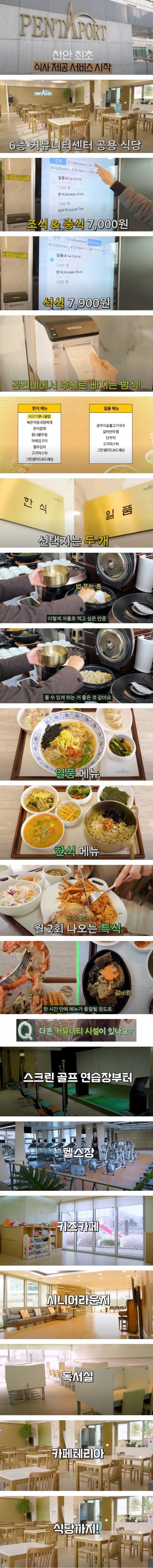 외부인은 입주민 동행하면 식사가능하고 건식 사우나까지 있다고함입주비는 43평에 6억 5천이라고함