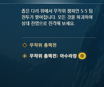 현재 롤에는 무작위 총력전 : 아수라장이라는 모드가 있는데