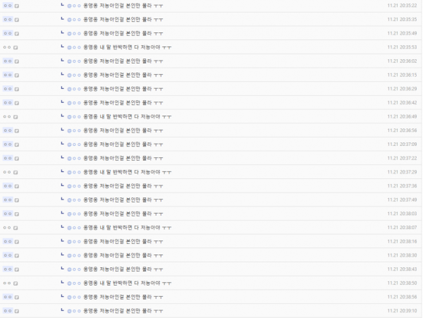 그리고 다른 사람도 다시 "웅앵웅 내 말 반박하면 다 저능아야 ㅜㅜ"로 응수