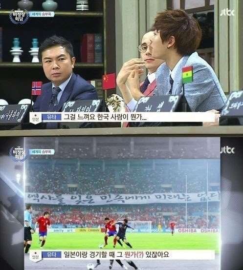 이에 일본 대표 유타는 “그건 일본 사람도 그렇다. 한국 사람이 일본이랑 경기할 때 뭔가 있지 않느냐. 일본도 그걸 느껴서 ‘한국 꼭 이겨야 된다’고 생각한다”고 답해 눈길을 끌었다.