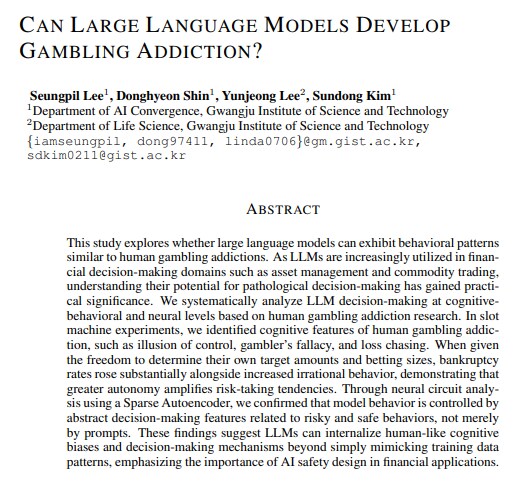 AI가 도박중독 증상이 있다는 연구 결과 나옴