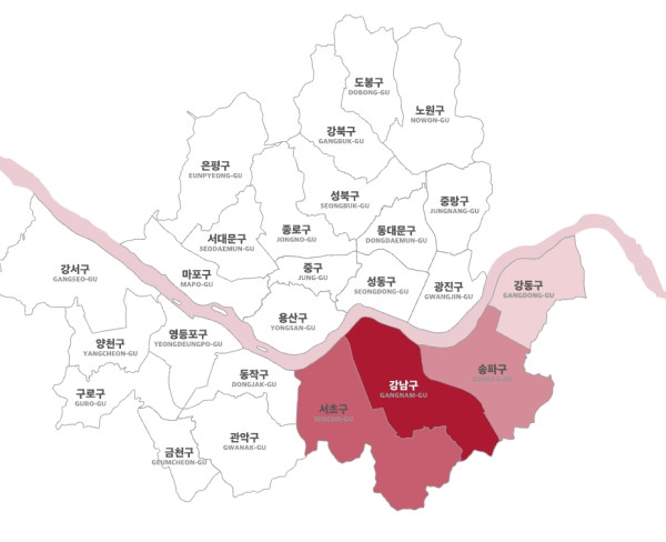 강남구와 서초구가 1988년에 분리 되었기에 강남구+서초구 까지는 묶어서 강남이라고 하는 사람들이 많은 듯