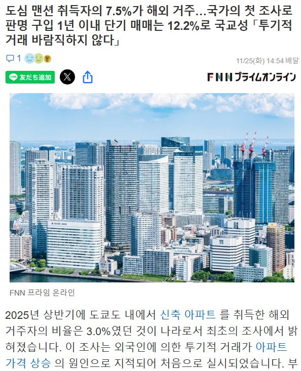 최근 일본 도쿄 아파트 가격이 급격하게 오른 이유
