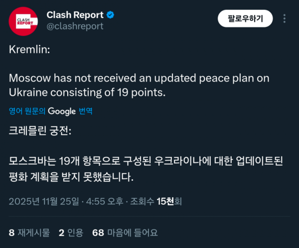 우크라이나가 잠재적 동의한 종전 협의한은 기존 항목에서 19개 항목으로 수정한 항목인데,