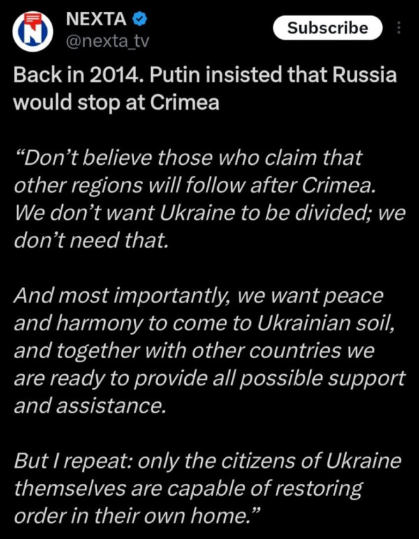 "우리는 크림 반도로 만족하며 더 이상 영토 요구는 안 할 겁니다."
