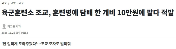 육군훈련소 조교, 훈련병에 담배 한 개비 10만원에 팔다 적발 - 뉴스1