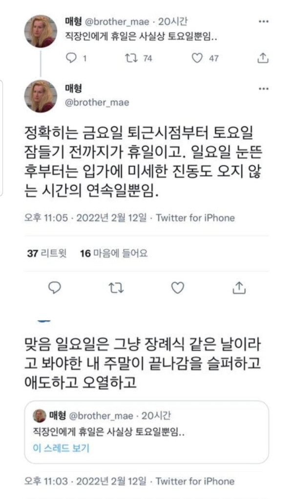 직장인들에게 휴일은 사실상 토요일뿐임