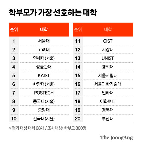 참고로 학부모가 가장 선호하는 대학 순위