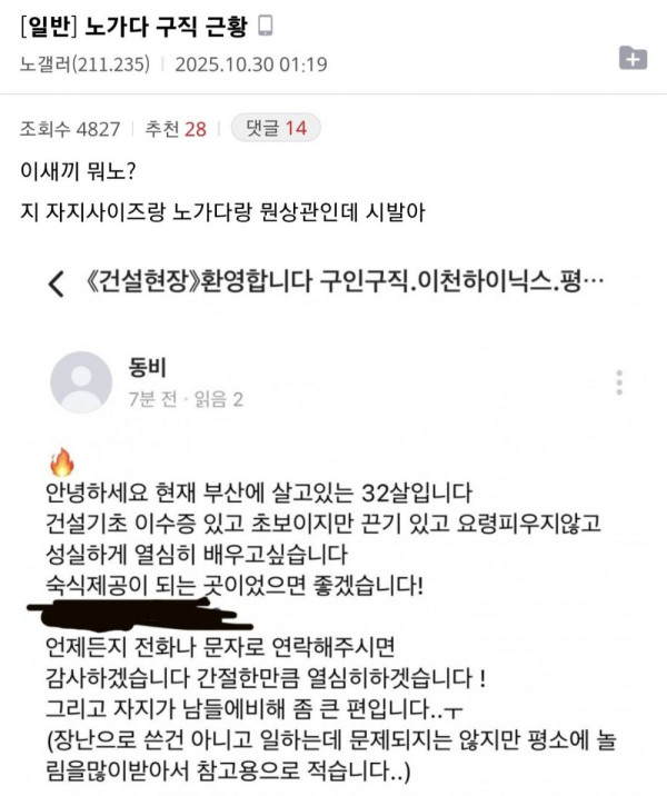 요즘 노가다 구직 근황