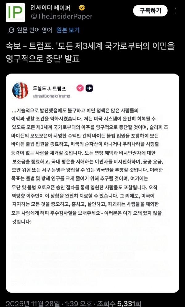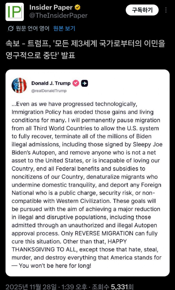 제3세계 출신은 미국에서 축출 시키겠다는 트럼프