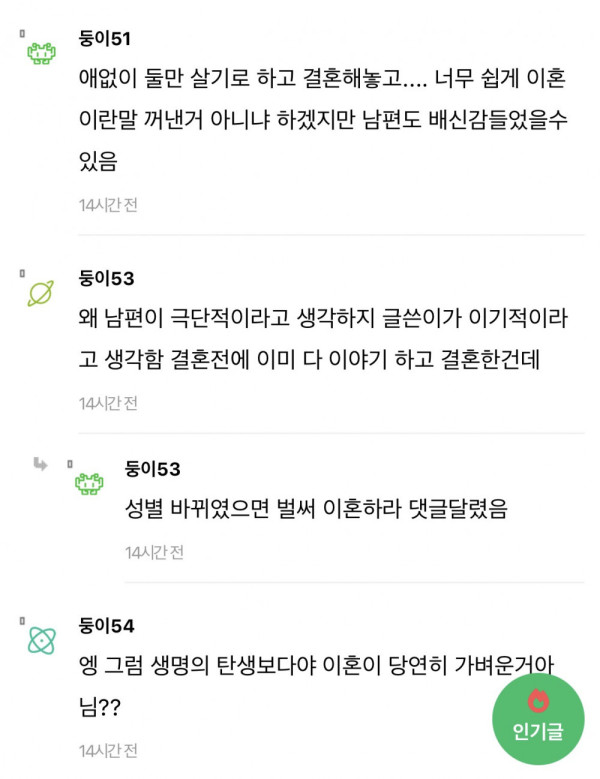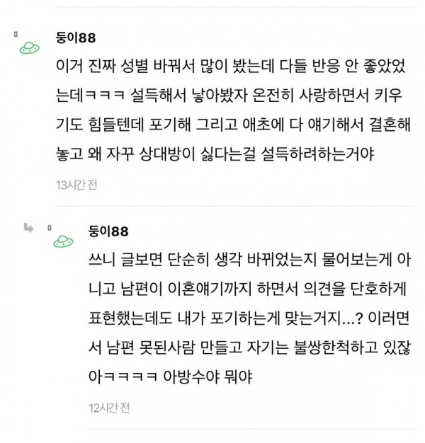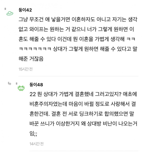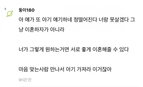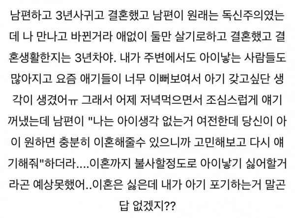 남편한테 애 갖고싶다했는데 남편이 이혼해줄수 있대
