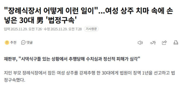 장례식장서 여성 상주 치마 속에 손 넣은 남자