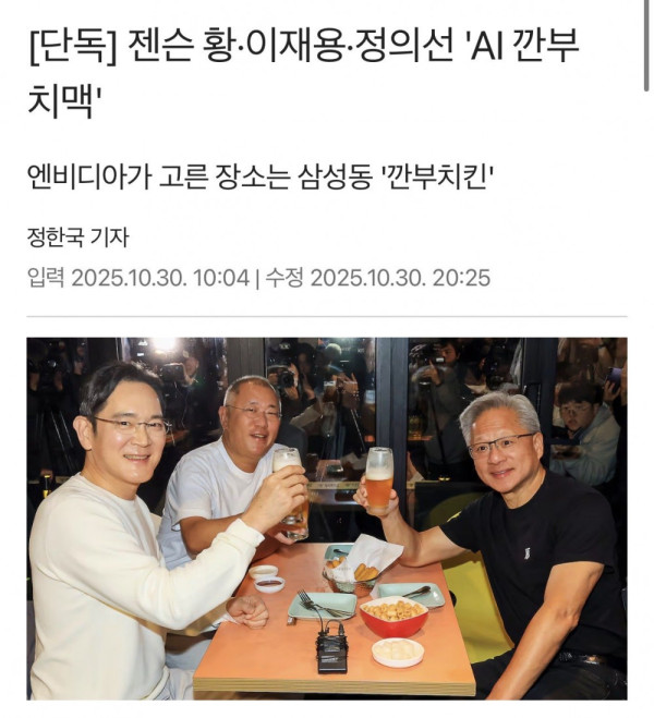 [단독] 젠슨 황·이재용·정의선 ‘AI 깐부 치맥’