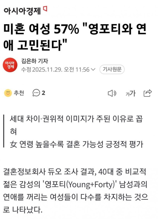 "남자친구 '영포티' 싫어요" 미혼 여성이 꺼리는 이유는 - 아시아경제